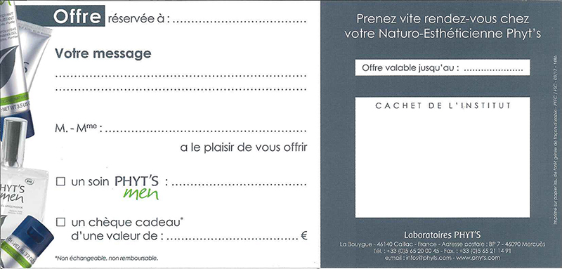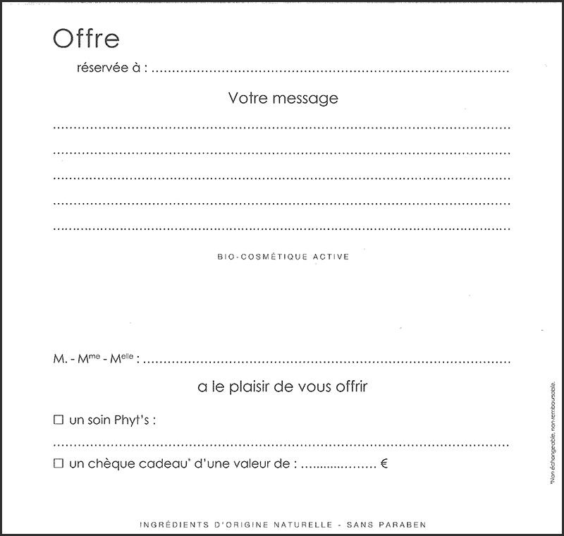 Validité du chèque cadeau : 6 mois à compter de la date de réception du paiement.
